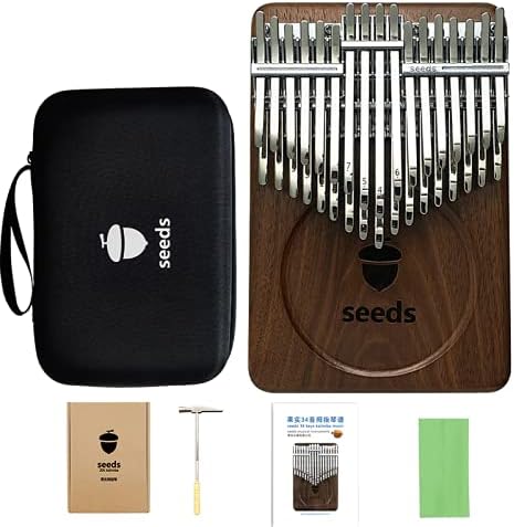 This is really a challenging one. It's neither heavier nor bigger than the regular 17 key kalimba. It is not just for beautiful at first glance, once you get the hang of it, you'll fall in love with this musical instrument more. This Seeds Chromatic Kalimba has a total of 34 keys. Bottom layer is 17 key in C and upper layer in the middle start from low 4 to high 4. You will be able to play much more songs . --Play on bottom layer original 17 keys kalimba --Play on bottom layer + (4-5-6-7) 21 keys kalimba --Both layers together 34 key chromatic kalimba Pakcage including: 1* 34 key seeds chromatic kalimba 1*tuning hammer 1*hard shell carry box 1*musical book 1*wooden stand 1*clean clothing