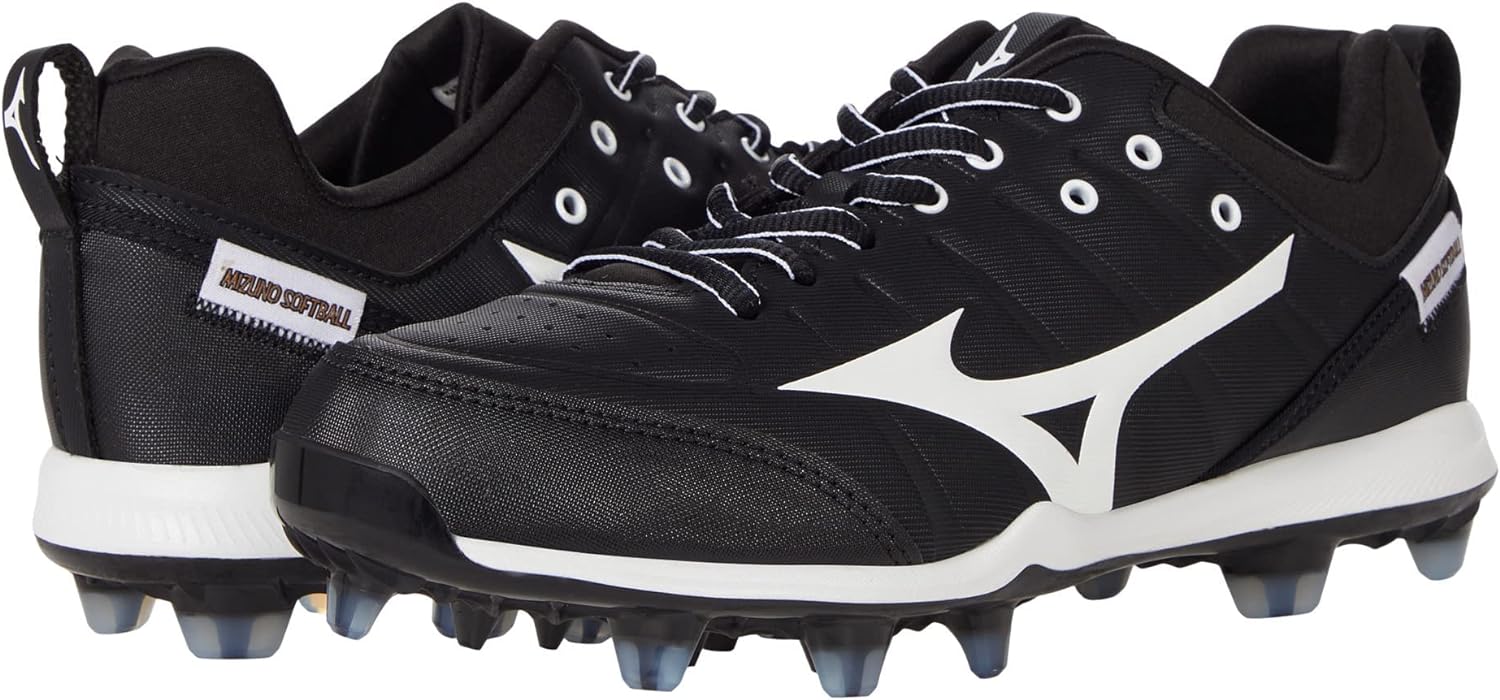 Get ready for an active day wearing these stylish and high utility Mizuno 9 Spike Advanced Finch Elite 5 TPU Molded Softball Cleat. Synthetic upper. Textile lining. Removable insole made of textile material. Gender engineered for softball-specific movements to offer enhanced cushioning and ultimate comfort. The MIZUNO WAVE plate disperses energy from impact to a broader area and leads to a stable platform. Features translucent I-shaped TPU studs that bring a unique accent and increase traction on multiple surfaces. Easy lace up closure. Padded bootie tongue for superior fit and comfort. Rib construction of the outsole leads to enhanced stability, flexibility, and traction, while also reducing stud pressure during long games. Synthetic outsole for added traction and durability.