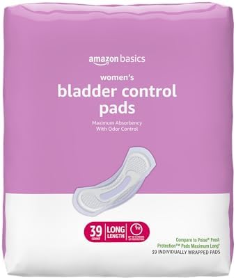 Amazon Basics Incontinence Pads for Women Long, Bladder Control, Postpartum, Maximum Absorbency, Unscented, 39 Count