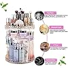 【GRANDE CAPACIDAD DE PORTAMIENTO】La base estable gira suave y silenciosamente y asegura que los cosméticos permanezcan en su lugar; las bandejas gruesas y duraderas son lo suficientemente fuertes para soportar productos pesados (fíjalas con anillos de goma para asegurar que esté bien asegurado). Nuestros organizadores de maquillaje acomodan al menos 60 pinceles de maquillaje, 30 productos de cuidado de la piel y otros accesorios incluyendo labiales, esmalte de uñas, delineador de ojos y más.