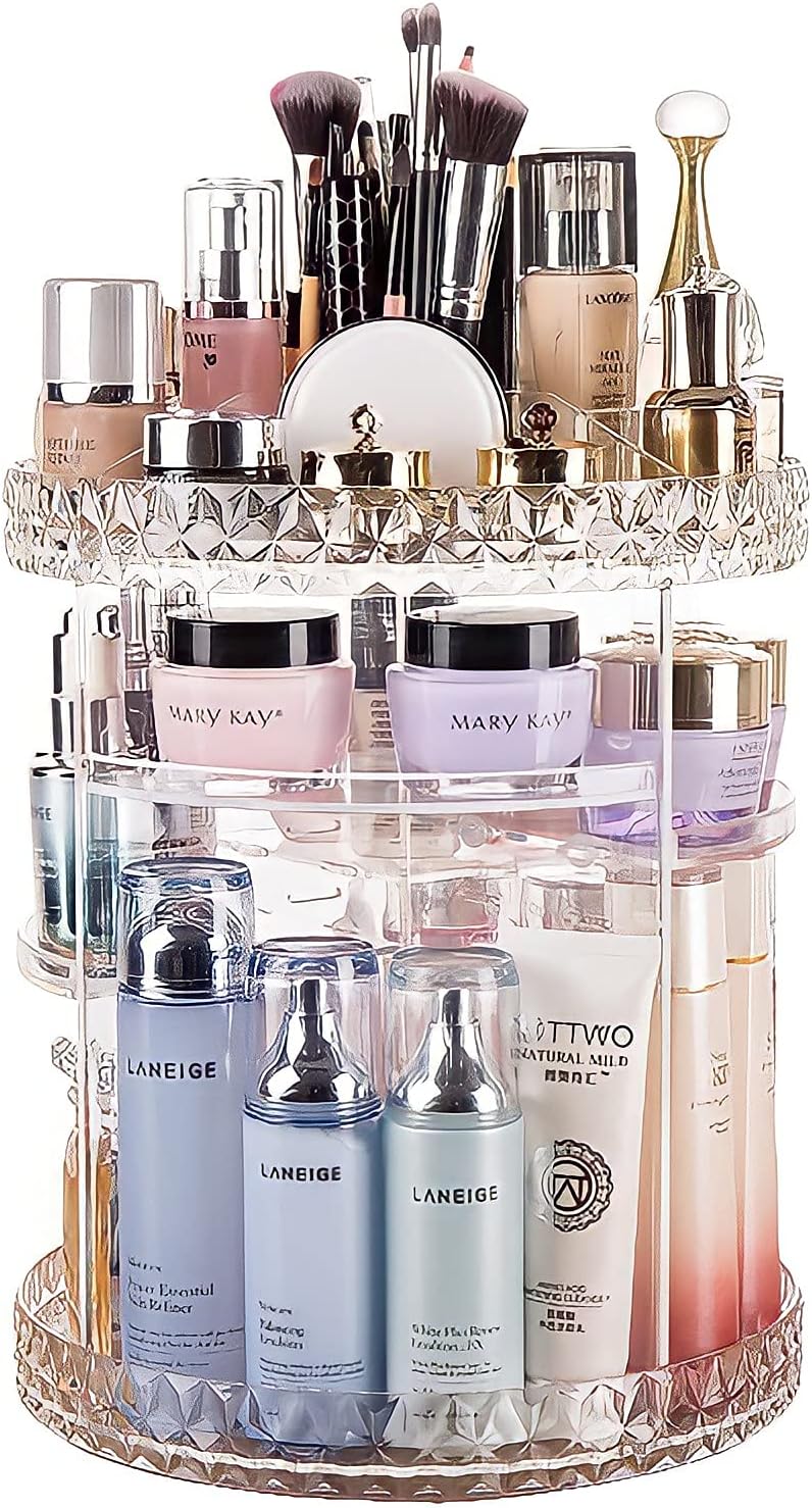 Organizador de Maquillaje Twinkie Molly 360 Giratorio Ajustable, Estuche de Exhibición de Acrílico Transparente de Gran Capacidad para Almacenar Cosméticos, Adecuado para Joyería, Pinceles de Maquillaje, Labiales y Más (Estilo Reina de Diamantes)