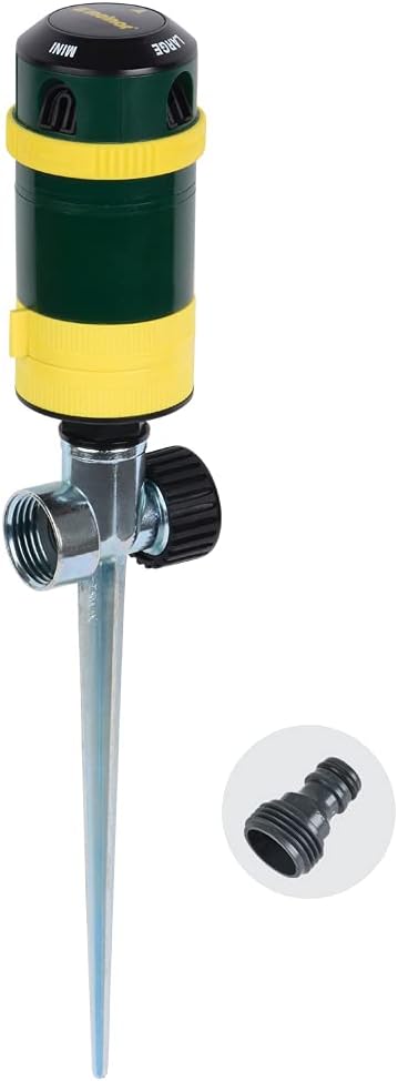 Melnor 65404AMZ Turbo Rotary Sprinkler on Step Spike, 4-Pattern, QuickConnect Product Adapter, Green, Yellow