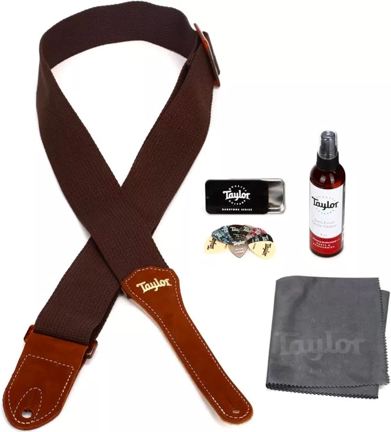 The GS Mini/Travel Guitar Essentials Pack includes everything a new acoustic guitar player could need, making it a perfect add-on to any GS Mini, Baby Taylor or any satin-finished Taylor model. The pack features:GS Mini Guitar Strap (Chocolate Brown Cotton, 2")DarkTone Series Guitar Pick TinSatin Finish Guitar CleanerPremium Suede Microfiber Polish Cloth
