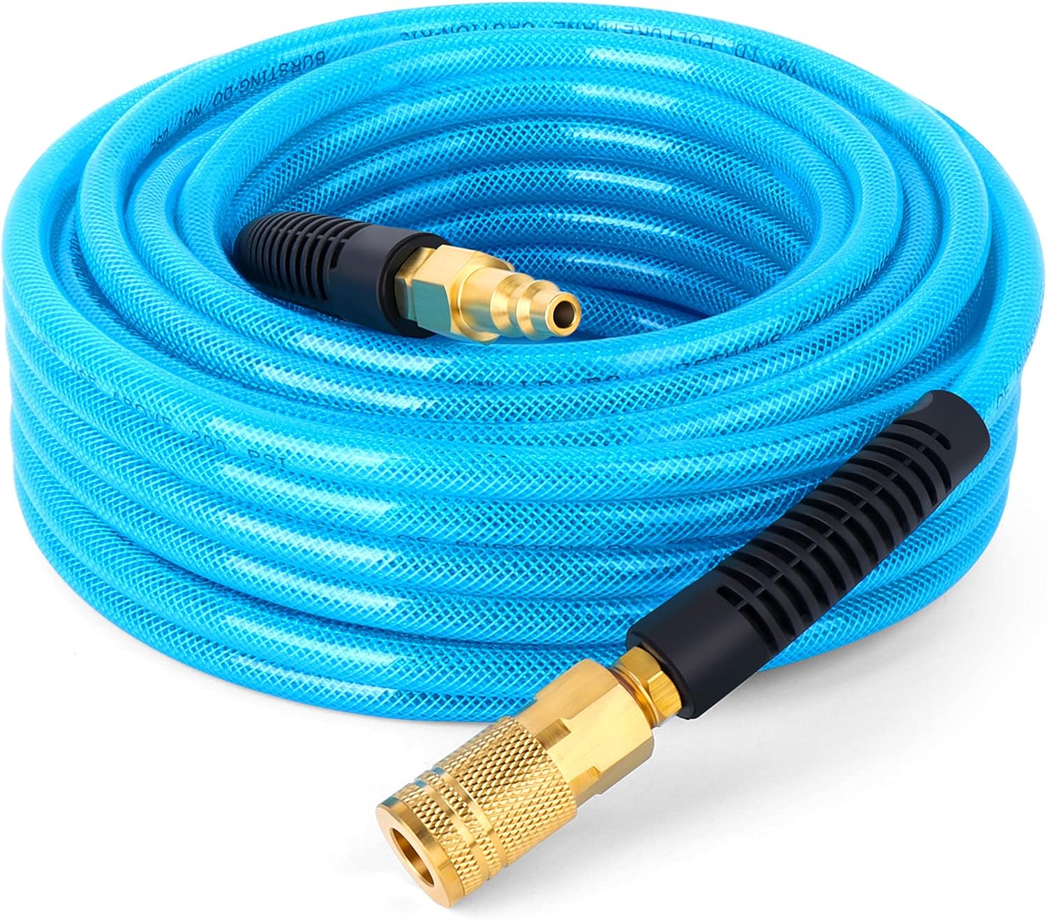 GASHER 1/4'' x 50FT Polyurethane Air Hose, Maximum Working Pressure 300PSI,Composed of Brass And Blue PU hose, Easy to Install