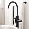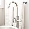 The Lentz Freestanding Tub Faucet elegantly modernizes the look of your bathtub while remaining efficient and practical. Its minimalist design includes a convenient hand shower and a knurled single-knob handle, which optimizes both style and grip. Made of high quality materials and available in a variety of corrosion-resistant finishes, this piece is built to last.