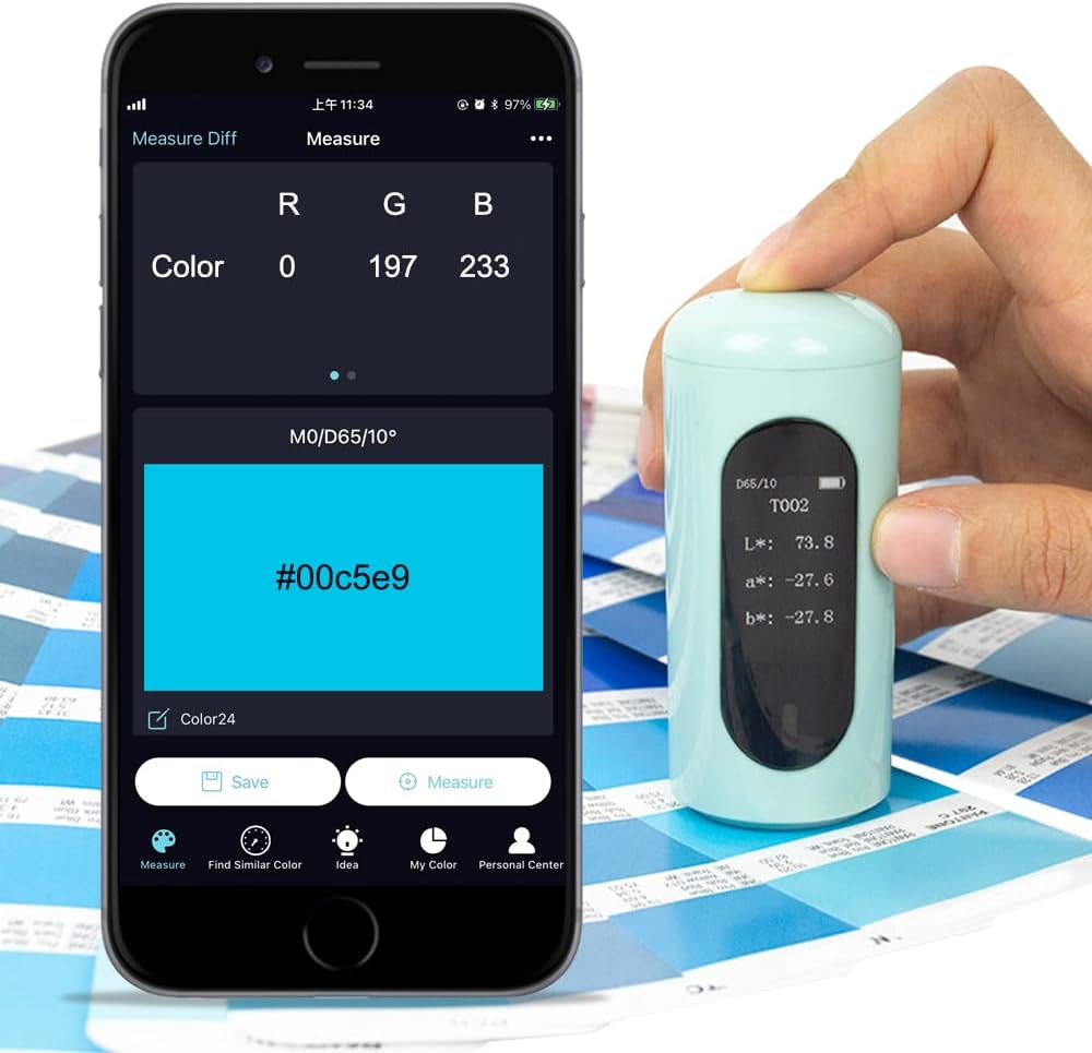 Colorímetro de sensor de color profesional, analizador de color Bluetooth portátil para capturar colores, igualar, comparar, guardar, medir valores de pintura y colores digitales al instante