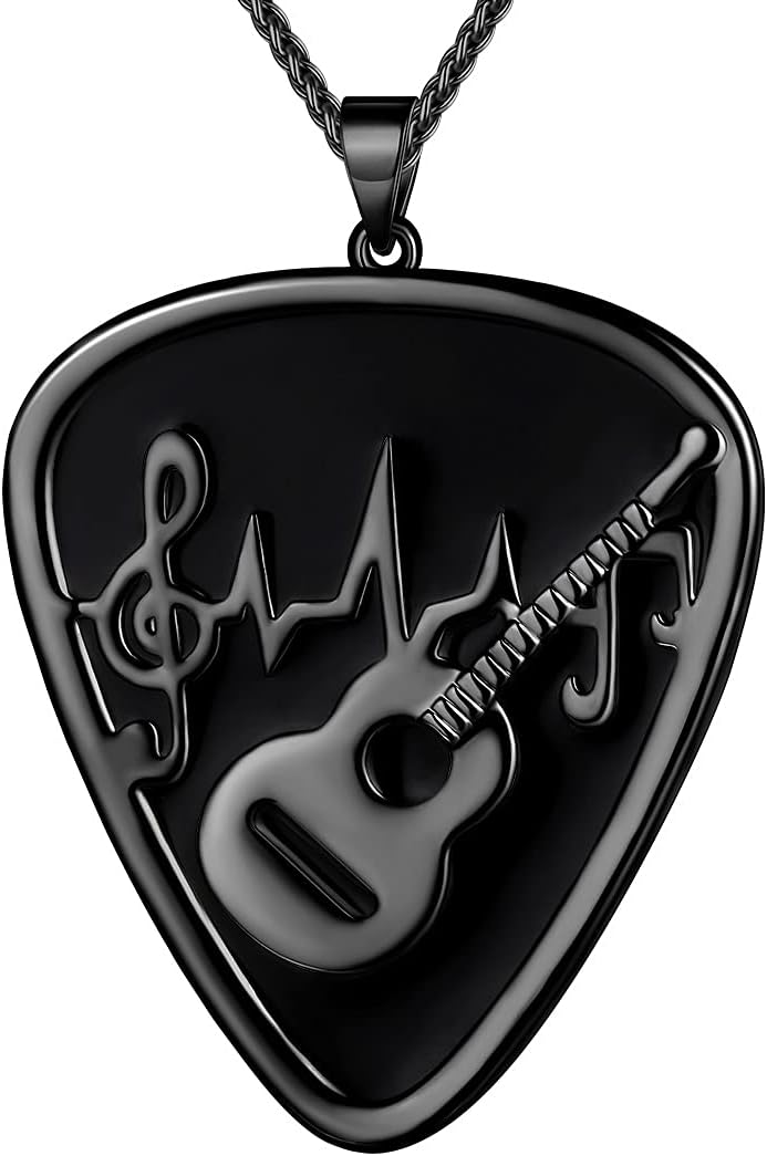 beautlace Guitar Pick Necklace Silver/18K Gold/Black Gun Plated Guitar with Music Note Pendant Jewelry for Music Lover Men and Women KP0157