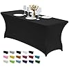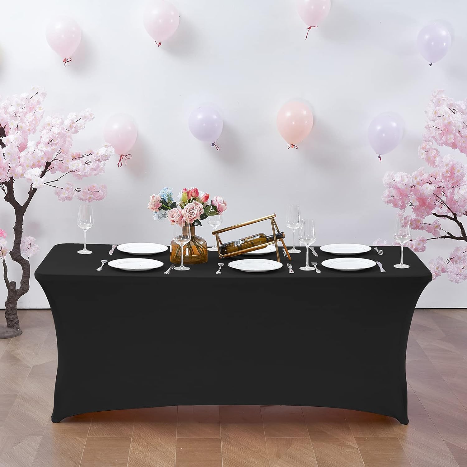 CWK 6FT Waterproof Stretch Spandex Table Cover for Rectangular Tables - Elastic Fitted Tablecloth for Folding Tables,Wrinkle Resistant Table Cloth for Parties, Weddings, Banquets & Events (Black)