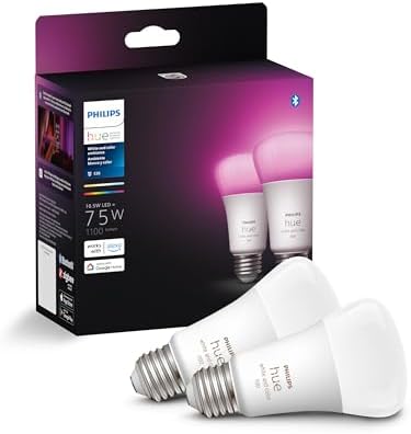 Philips Hue A19 LED Smart Light Bulbs - Flicker-Free 75w Light Bulbs - Control with Hue App - Compatible with Alexa, Google Assistant, and Apple HomeKit - E26 Base - 2 Pack