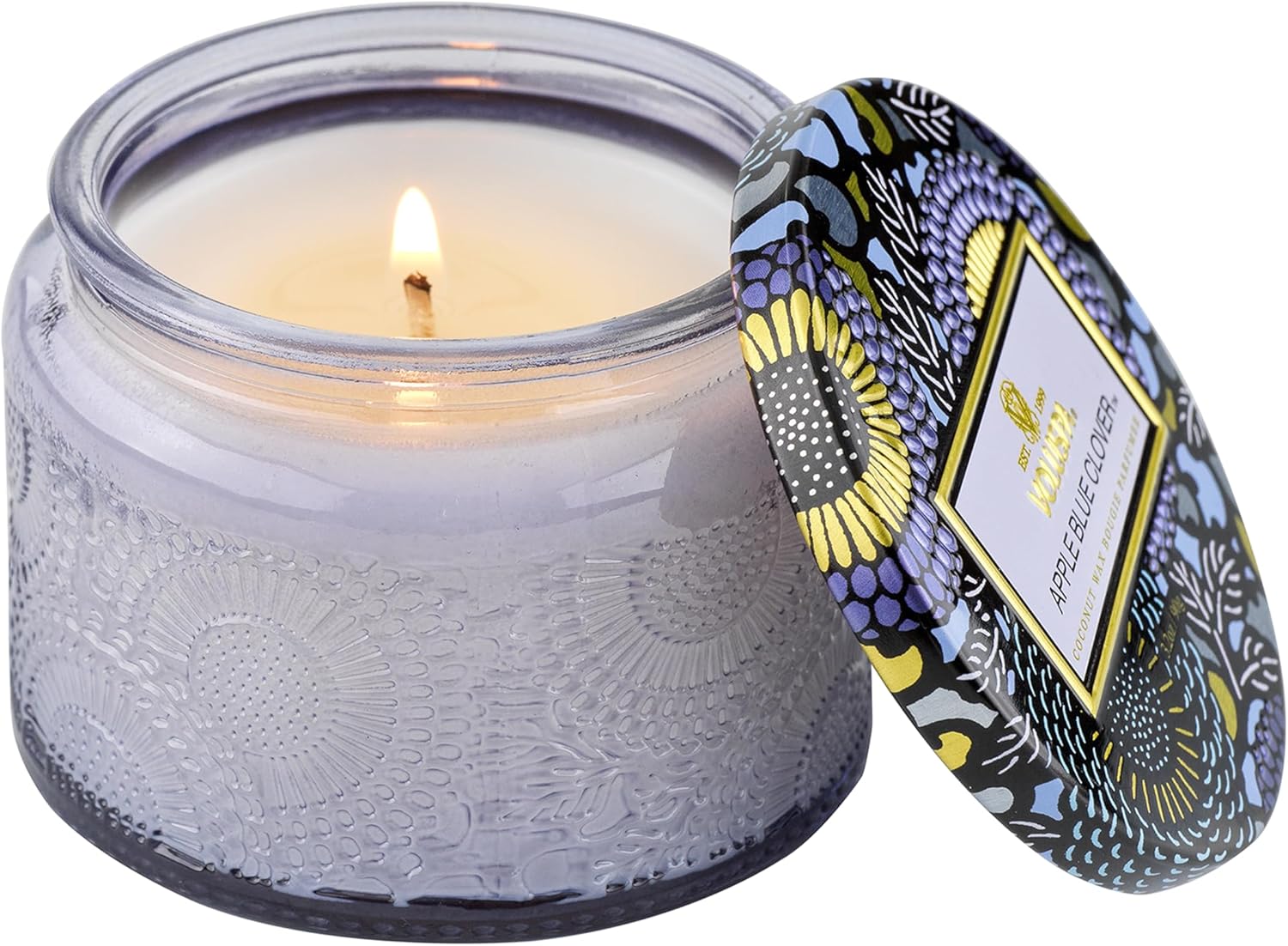 Voluspa Apple Blue Clover, Petite Candle Jar, 3.2 oz, 25 Hour Burn Time, Coconut Wax for Clean Burning, Handcrafted in The USA