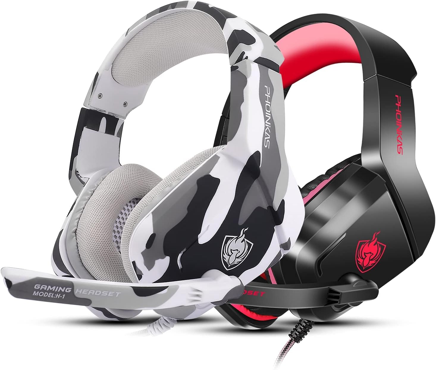 PHOINIKAS 2 PCS H1 Gaming Headset(Camo & Red), for PS4, Xbox One, PC, Laptop, Nintendo Switch, Over Ear Headphones with Noise-Cancelling Mic