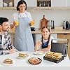 【Placas Antiadherentes】Las placas de aleación de aluminio con revestimiento antiadherente tienen propiedades de alta conductividad térmica y calientan uniformemente. La placa de cocción antiadherente está hecha de aluminio de grado alimenticio, que es saludable y seguro; dándote resultados crujientes y dorados. El tamaño de las placas es L9 X W 5.7 pulgadas. La superficie de cocción cuadrada de 9 pulgadas acomoda 2 sándwiches gruesos o 1 sándwich largo