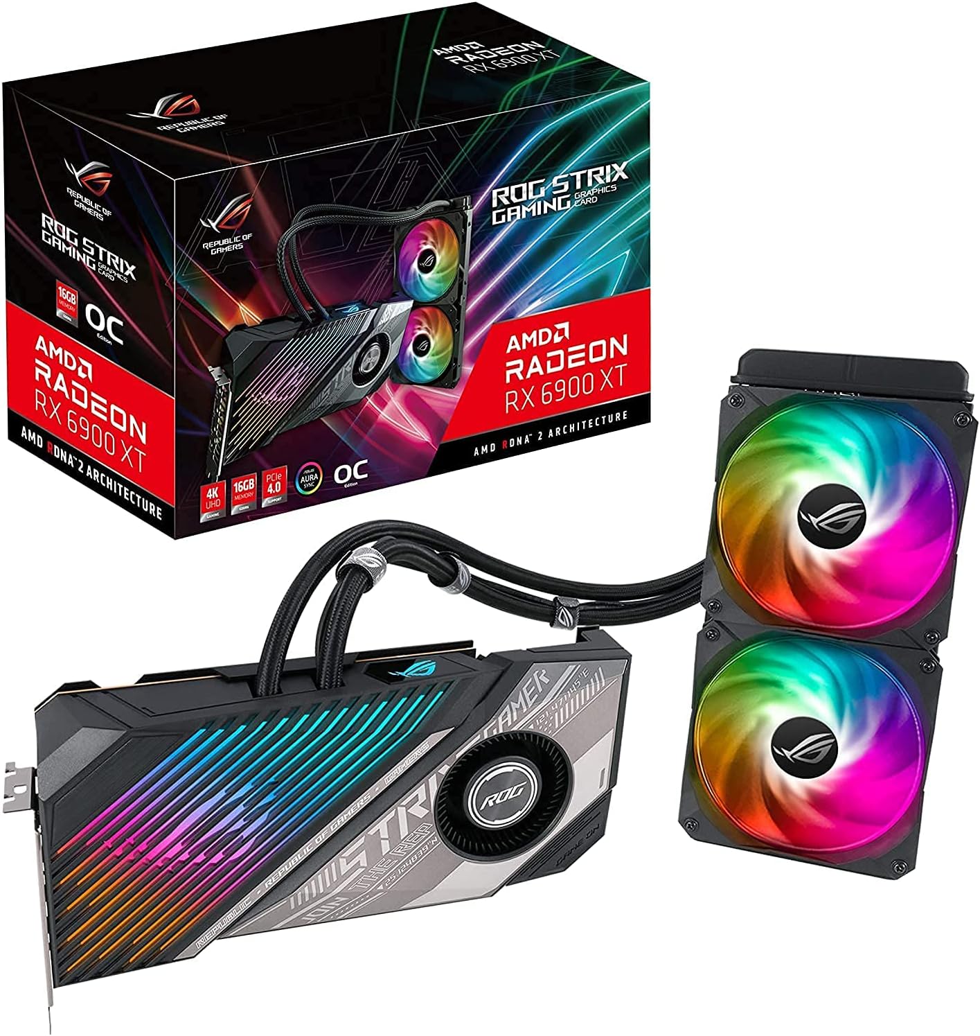 Tarjeta gráfica de juego ASUS ROG Strix LC AMD Radeon™ RX 6900 XT TOP Edition (AMD RDNA™ 2, PCIe 4.0, 16GB GDDR6, HDMI 2.1, DisplayPort 1.4a, placa de enfriamiento de cobertura completa, radiador de 240mm, tubería de 600mm)