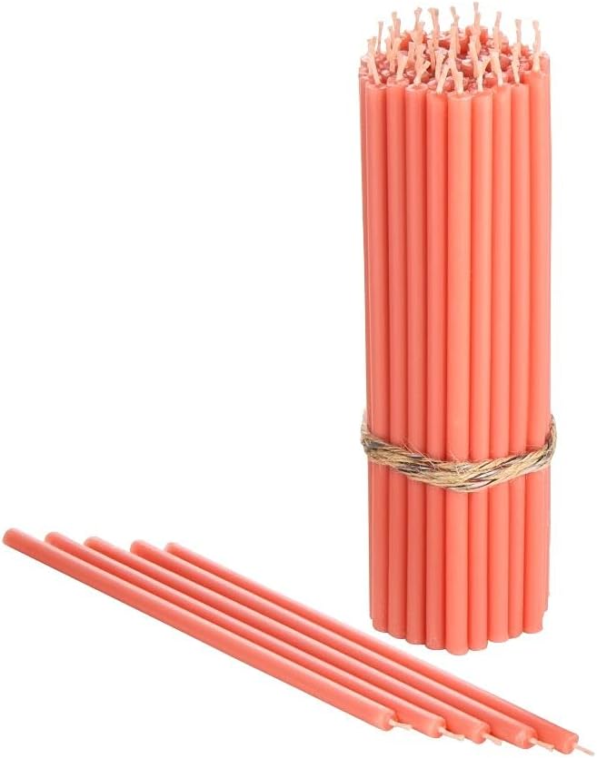 Danilovo Thin Taper Beeswax Candles - Honey-Scented, Decorative Candles Ideal for Birthday Decoration or Church Prayers - Pink Drip Free, Tall & Smokeless Pack of 50 pcs, 6.4 x 0.22 inch
