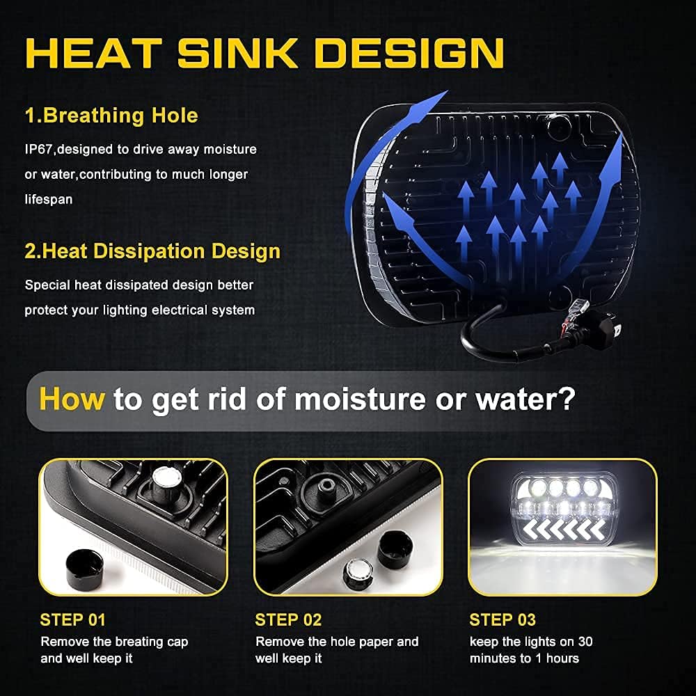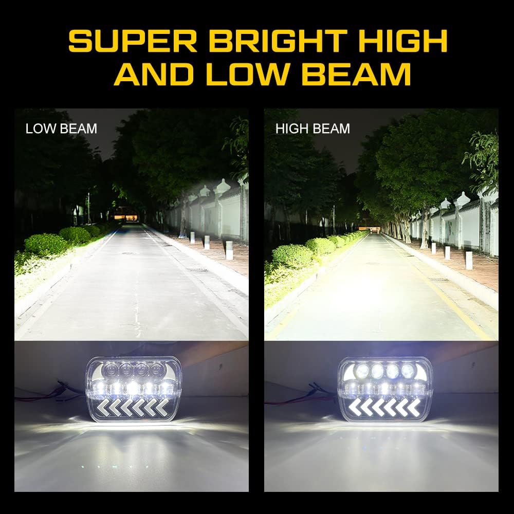 H6054 LED Headlights 5x7 7x6 150W DOT 500% Bright Anti-glare Headlamp DRL Turn Signal Hi/Low Sealed Beam for Jeep Cherokee XJ Wrangler YJ Ford Chevy GMC Nissan (2Pcs)
