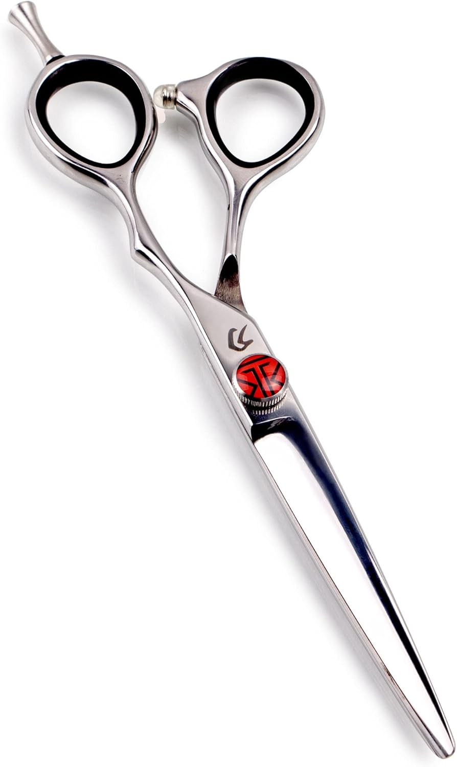 Tijeras de corte de pelo Tokko Katana Classic Professional Razor Edge 440C de acero inoxidable japonés, tijeras de barbero de 6.5 pulgadas con tornillo de ajuste y funda de piel