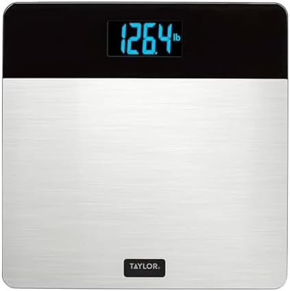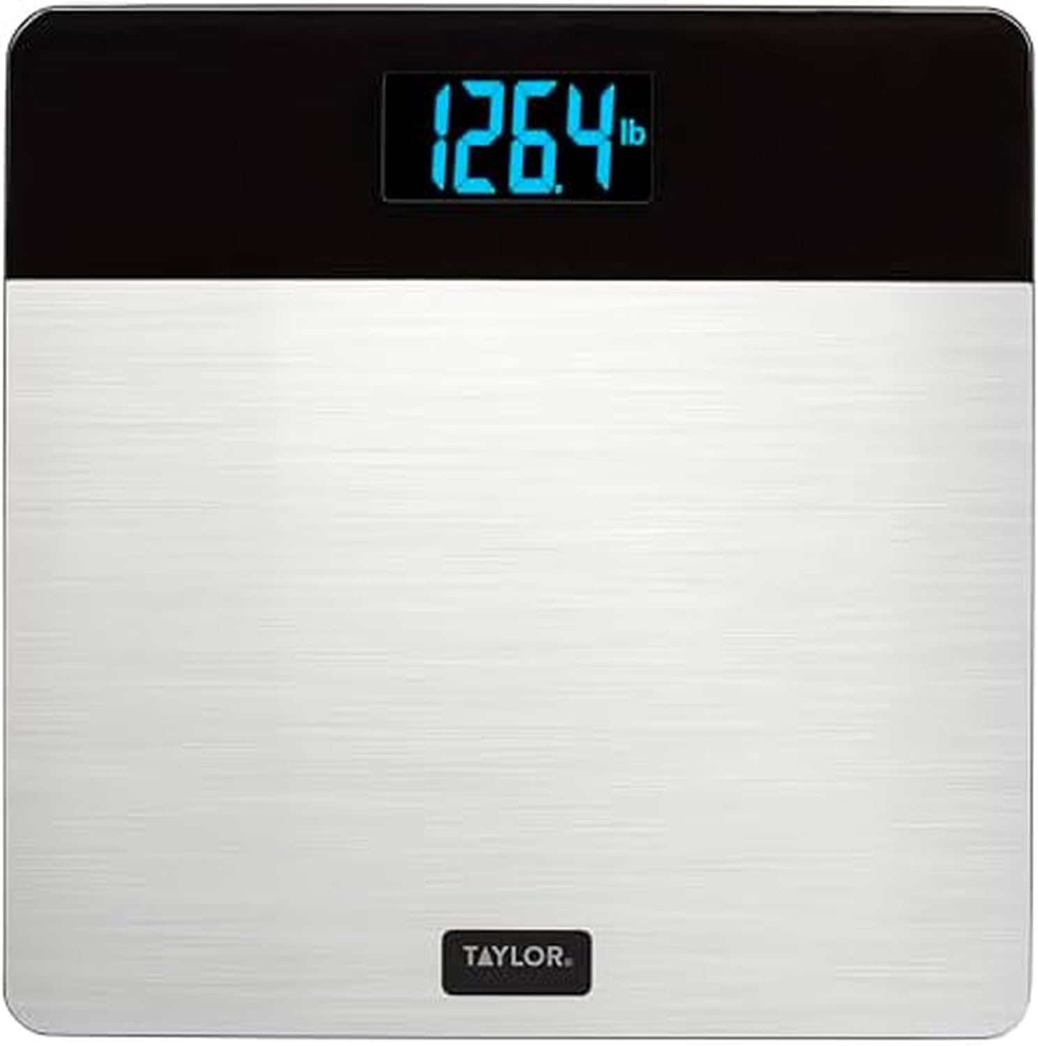 Taylor Digital Brushed Stainless Steel Scale, Bathroom Scale for Body Weight, Digital Bathroom Weighing Machine, Battery Powered, FSA HSA Eligible, Highly Accurate, Measures Weight up to 400 lb, Black