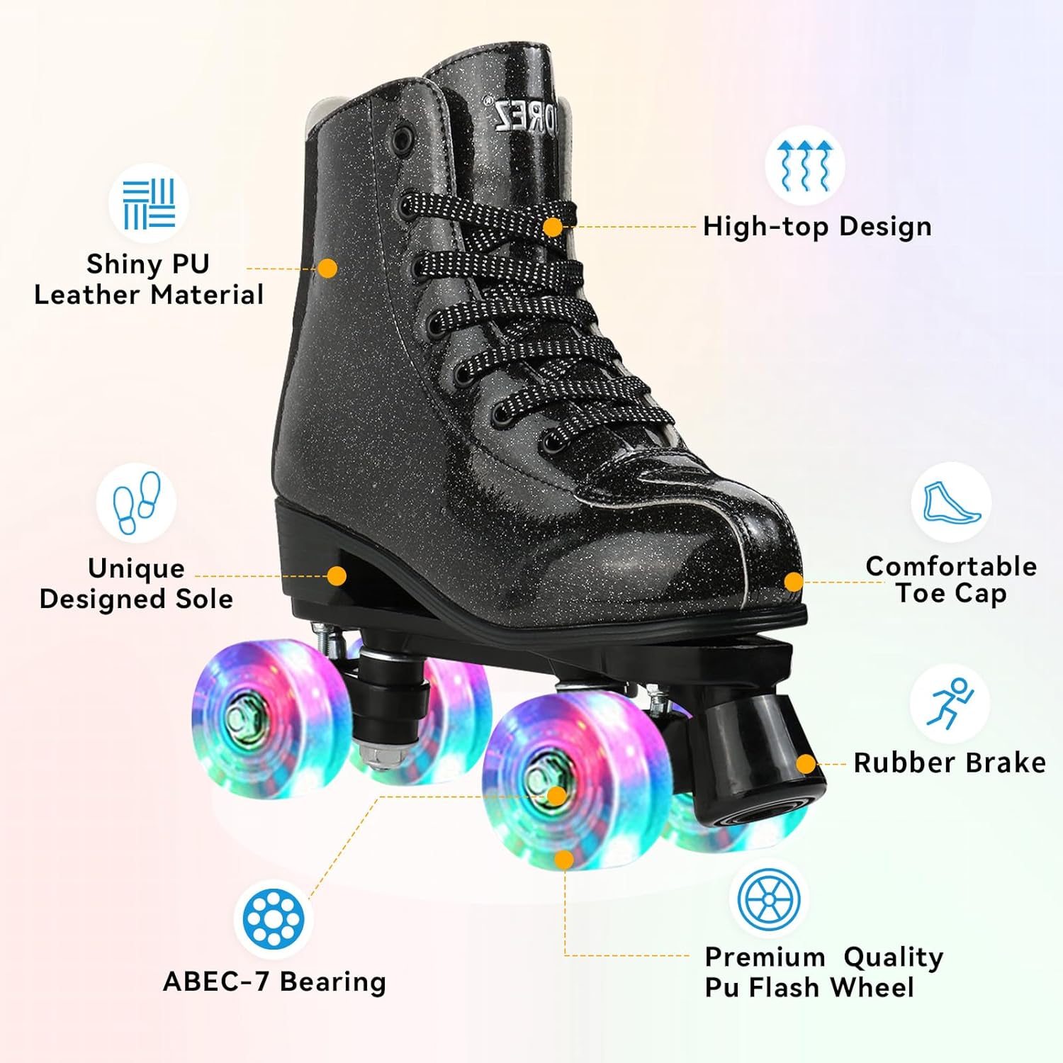 Patines en línea XUDREZ para mujeres y hombres, zapatos de patinaje sobre ruedas de cuero PU brillante de alta calidad para principiantes, patines en línea clásicos de doble fila, patines en línea para interiores y exteriores