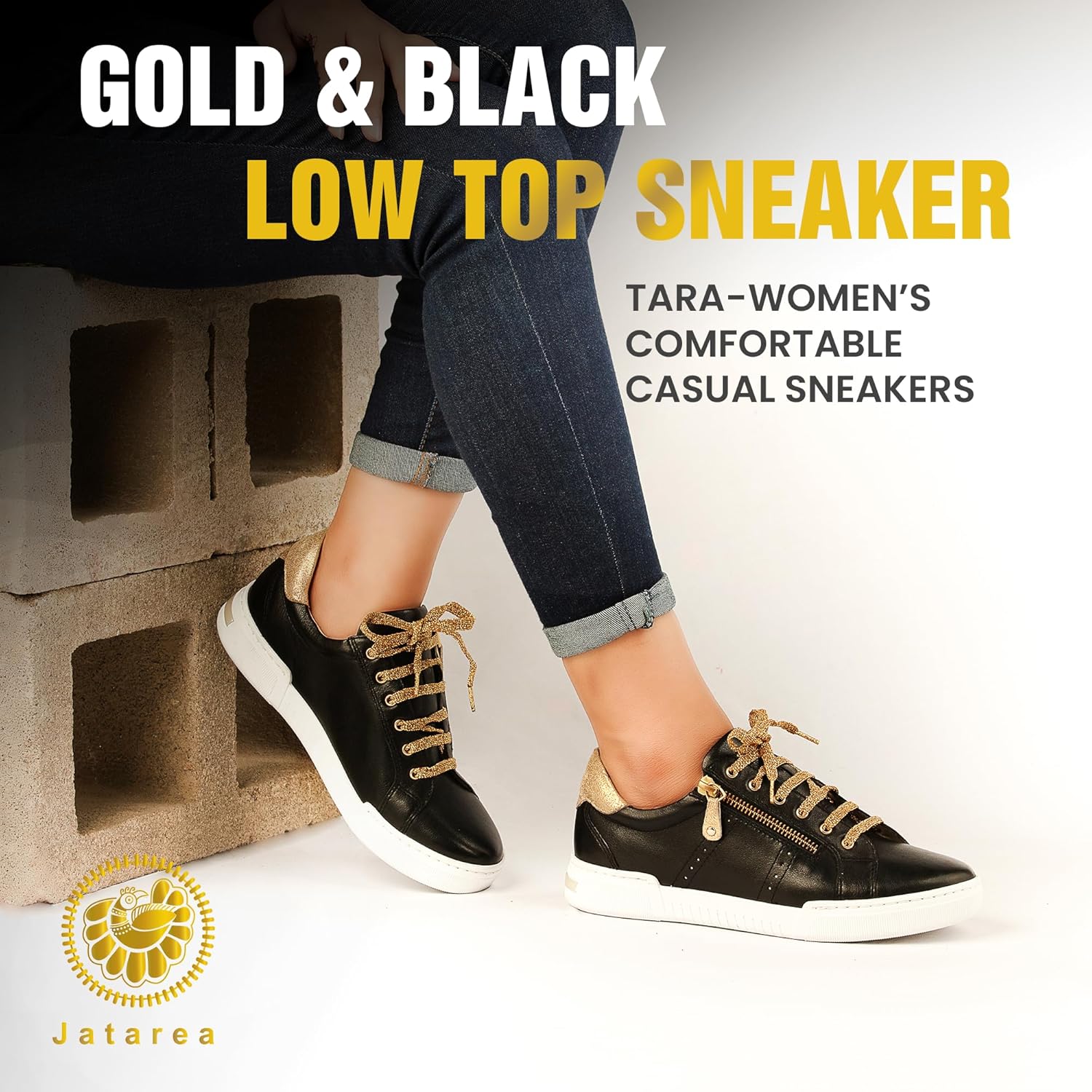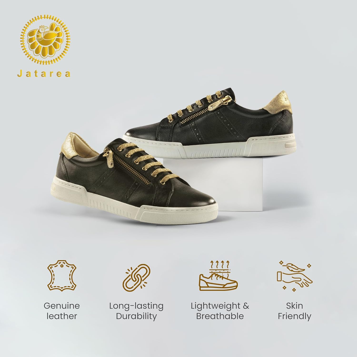 JATAREA Women's Fashion Sneakers – Genuine Leather Casual Shoes, Comfortable Cushioned Insole, TPR Rubber - Ethylene Vinyl Sole, Stylish Lifestyle, Lightweight & Durable Travel Sneakers