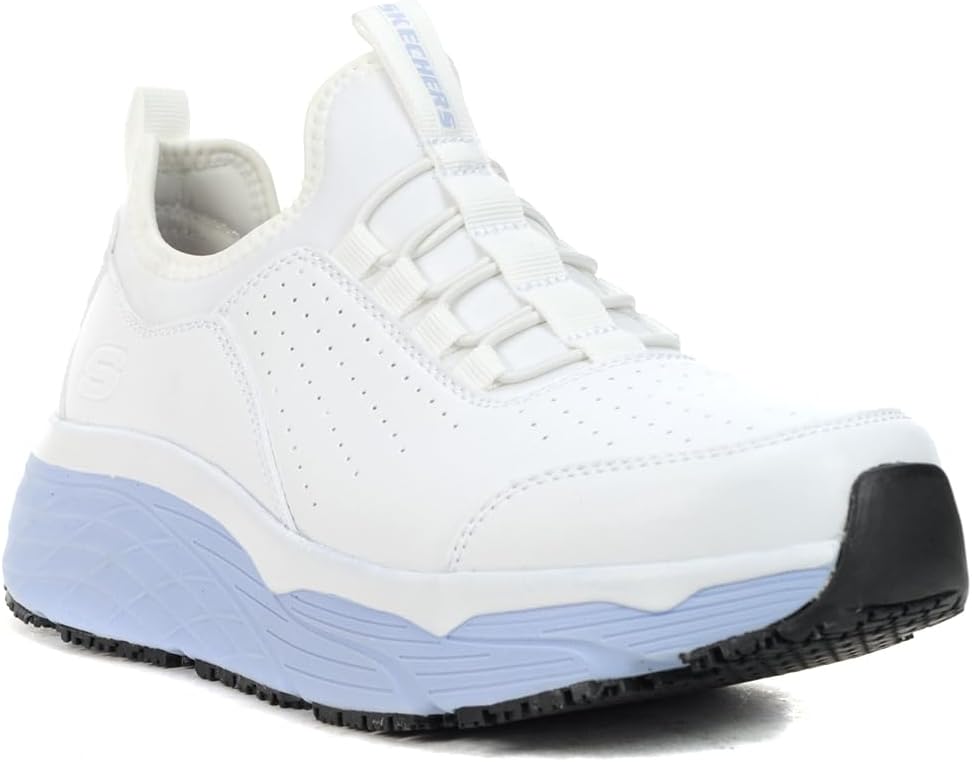 Skechers Women's Work Max Cushioning Elite SR - Serotina Sneaker, White/Light Blue, 9.5