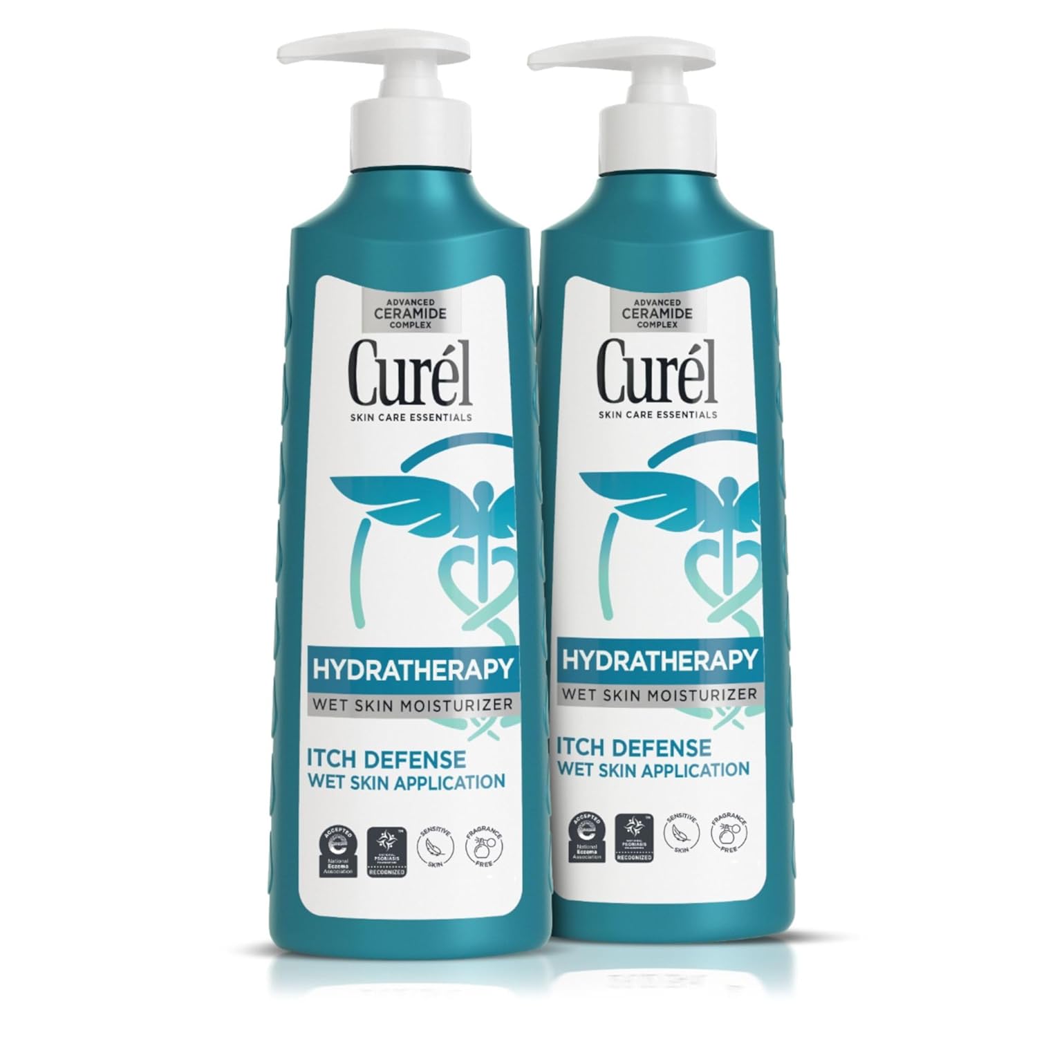 Curel Hydra Therapy In Shower Lotion, Itch Defense Body Moisturizer with Advanced Ceramide Complex, Vitamin E, & Oatmeal Extract, 12 Oz, Pack of 2