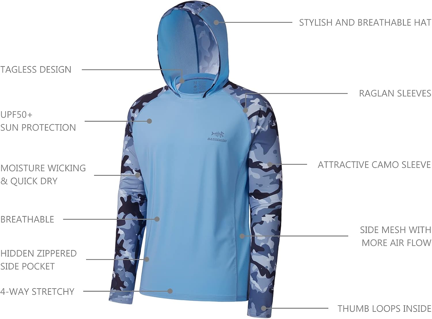 BASSDASH Men’s UPF 50 Performance Fishing Shirt Cooling Hoodie Camo Long Sleeve FS17M