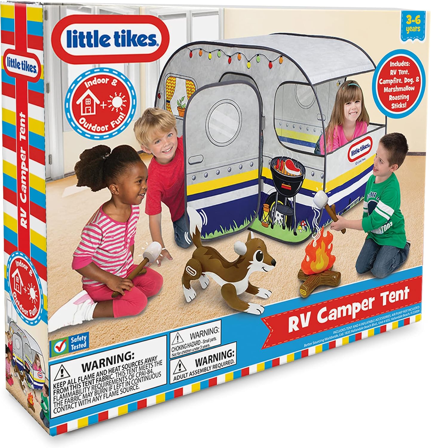 The Little Tikes Rv Camper Tent Is Just Perfect For Your Happy Camper! Whether It Is Pretending To Travel Across The Country Or To A New Creative Campsite, Your Little One Will Never Be Bored With The Rv Camper Tent! Quick Set Up For Indoor And Outdoor Fun! Featuring A Roomy And Easy Open-Door Rv Camper Design Which Is Perfect For Two Children To Fit Inside. Imaginative Fun Sitting By The Inflatable Campfire While Pretending To Roast 2 Inflatable Marshmallow Sticks With Their Very Own Inflatable Four-Legged Furry Friend. Everything To Get Started On For Your Little Ones’ Imaginative Rv Journey Come To Life!