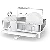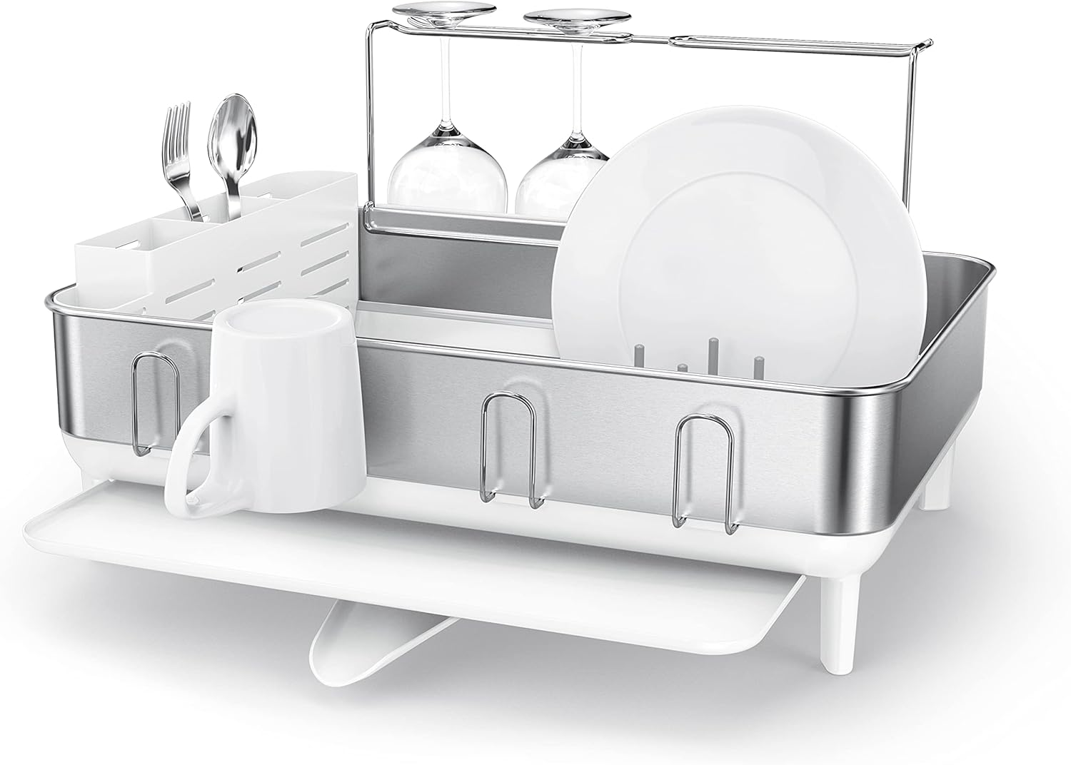 simplehuman Estante Secadora de Platos de Cocina con Boquilla Giratorio, Marco de Acero Inoxidable a Prueba de Huellas Dactilares, Plástico Blanco, Modelo 2022