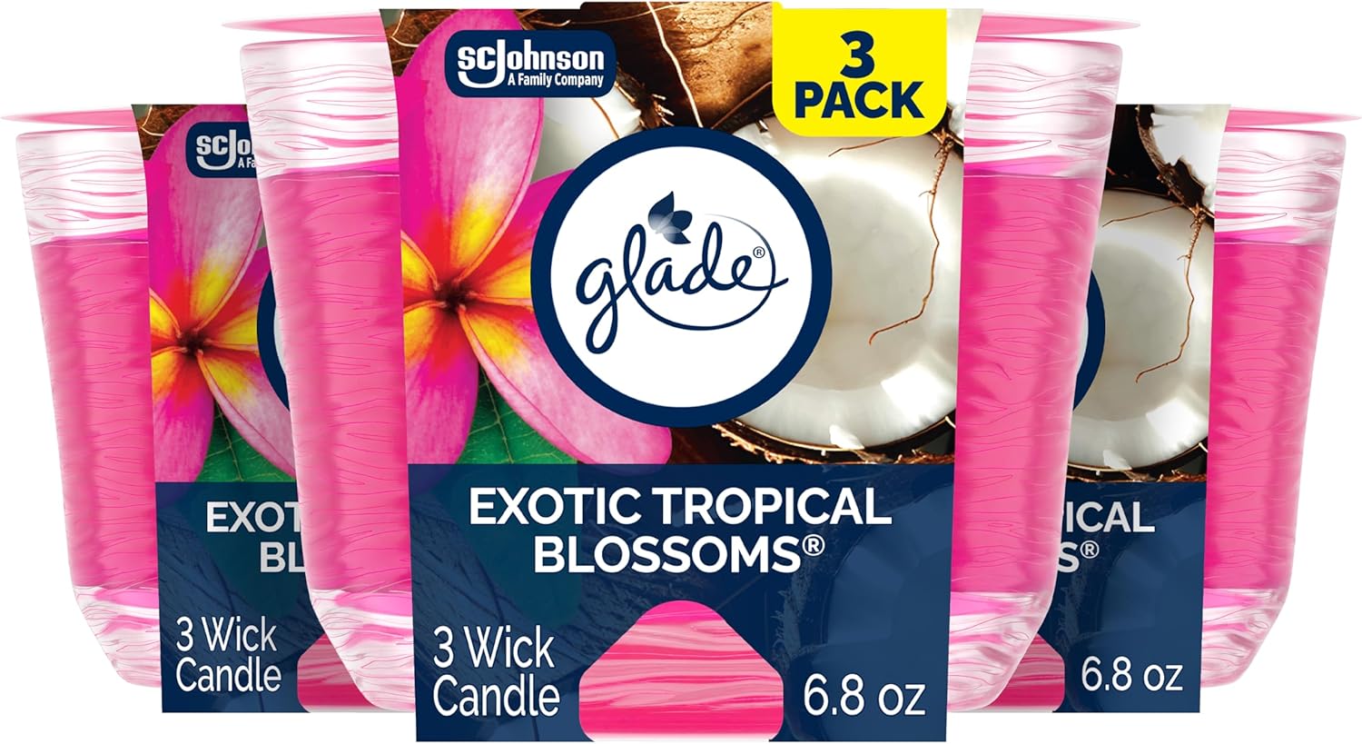 Glade Exotic Tropical Blossoms 3-Wick Air Freshener Candle, Infused with Essential Oils, 6.8 Oz, 3 Count