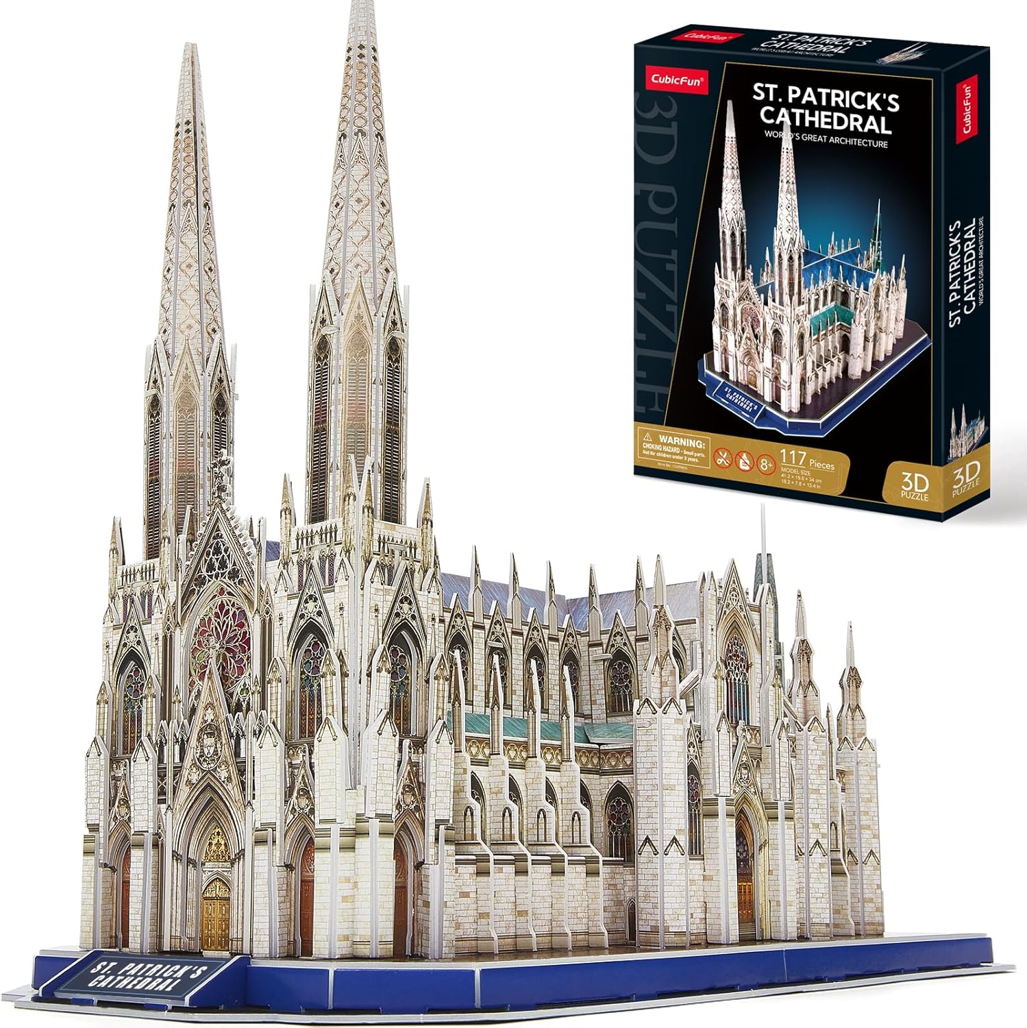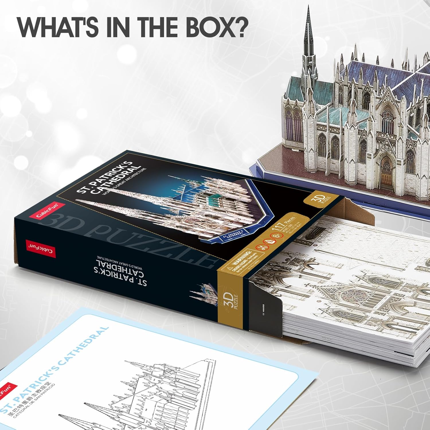 CubicFun 3D Puzzles for Adults St. Patrick's Cathedral Model Kits, New York Architecture Puzzles for Adults Building Toys for Kids Ages 10+, 117 Pieces with Booklet Easter Gifts Valentine's Day Gift