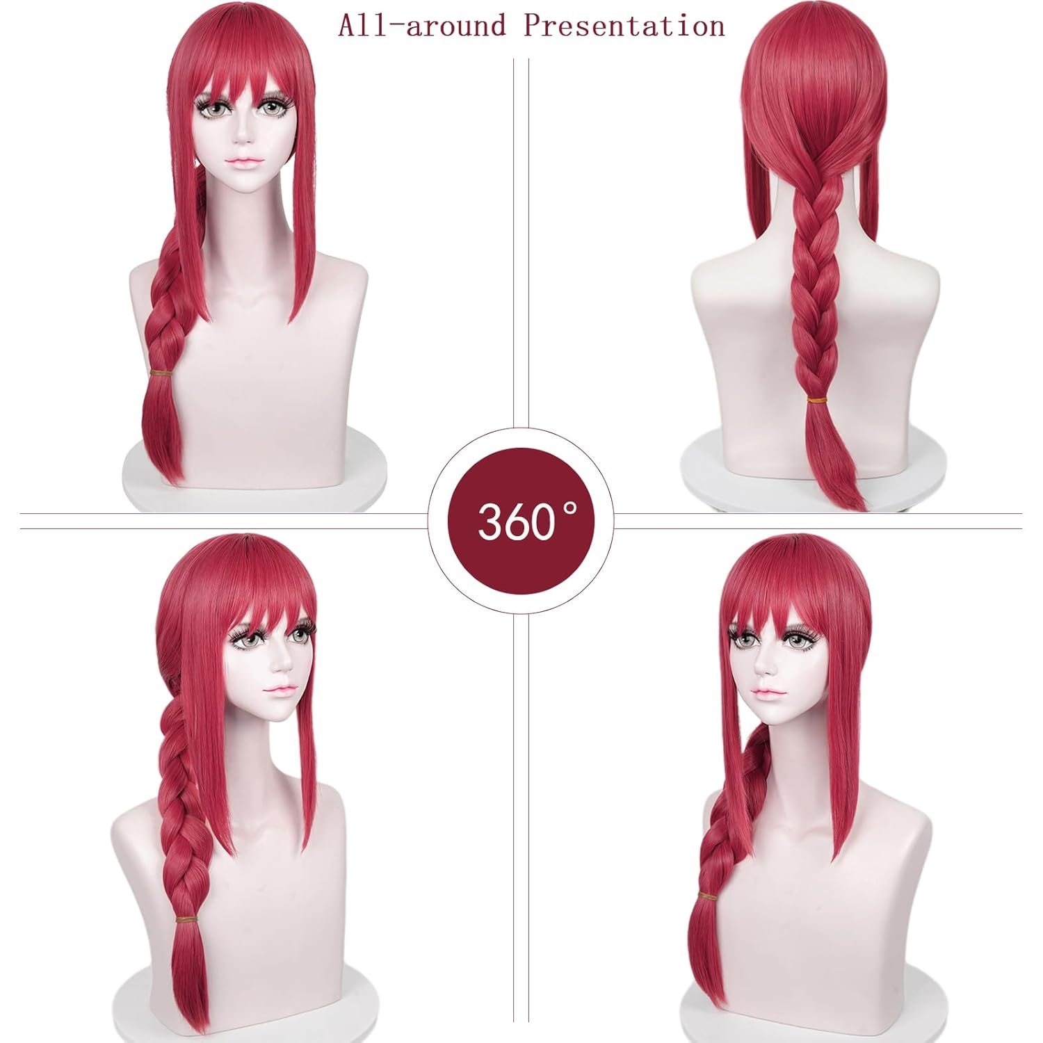 LABEAUTÉ Long Pink Braids Wig for Girls Women Cosplay Anime Braided Wig with Bangs for Csm Halloween Party Hair Wig + Cap