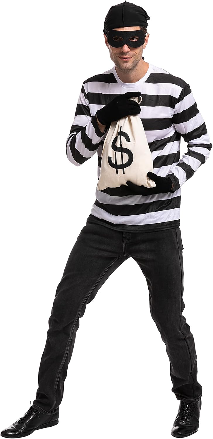 Spooktacular Creations Halloween Robber Costume Men, Unisex Thief T-Shirt Set, Halloween Costumes for Men