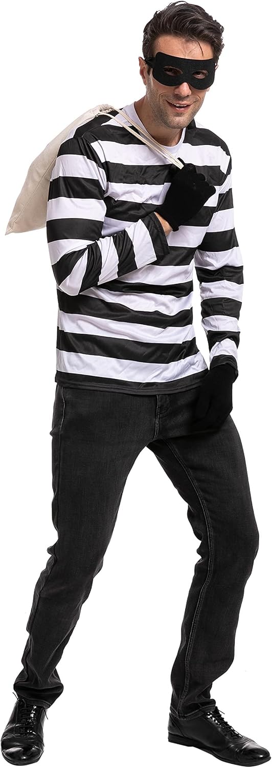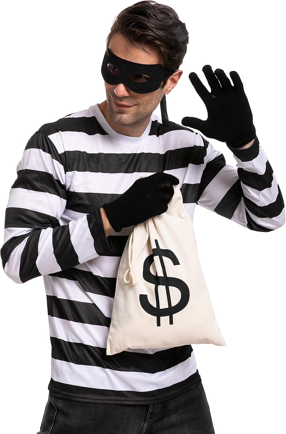 Spooktacular Creations Halloween Robber Costume Men, Unisex Thief T-Shirt Set, Halloween Costumes for Men