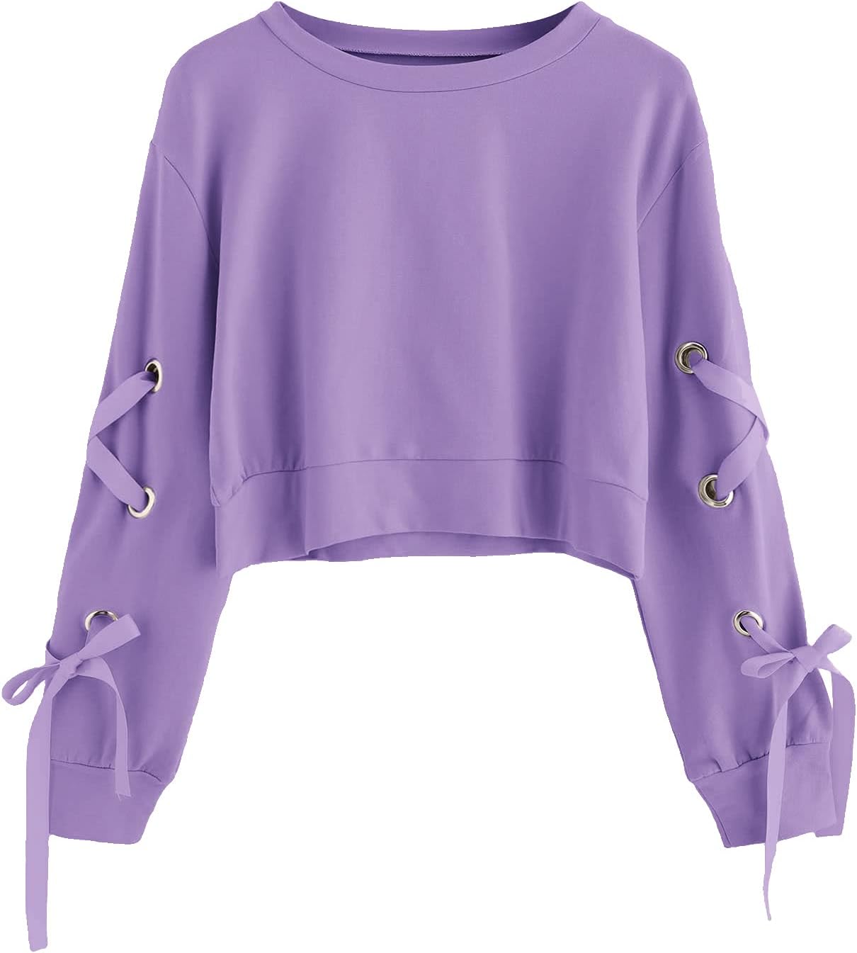 SweatyRocks Women's Casual Lace Up Long Sleeve Pullover Crop Top Sweatshirt Purple S