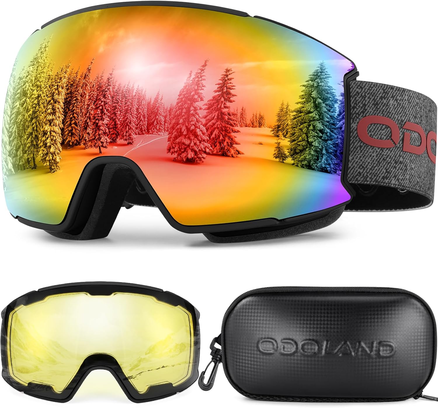 Conjunto de gafas de esquí Odoland magnéticas intercambiables con 2 lentes, Gafas de nieve anti-niebla con protección UV para snowboard para hombres y mujeres