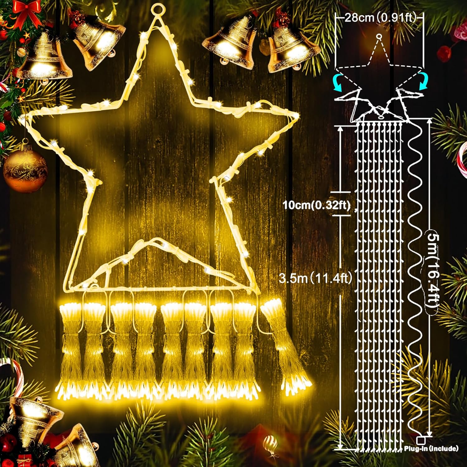 【LED de bajo consumo y cable duradero】Nuestras luces LED para Navidad en forma de cascada están fabricadas con cobre y plástico de alta calidad, son resistentes a los cambios climáticos, por lo que durarán años sin quemarse, consumen menos energía y son más baratas de operar, lo que te permite ahorrar a largo plazo. En comparación con las luces navideñas tradicionales, puede ahorrar energía en un 90%. ¡Económico y duradero!