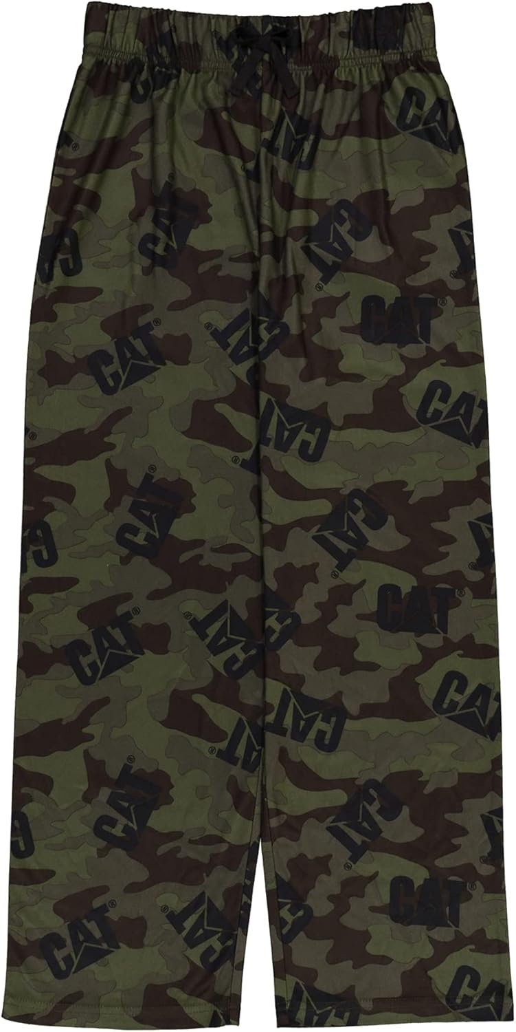 Get your young man excited about construction with these comfortable, soft Caterpillar pajama pants, featuring a simple design that will make him feel like a grown-up. Perfect for nighttime use or lazy days of play, these lounge pants will become his favorite bedtime clothing.Available in a variety of sizes, these black or camo-colored Caterpillar pants are great for summer, winter, spring, and fall wear. They feature a rich background with the iconic CAT logo. These plush footless pants fit loosely and have an easy on-and-off design and a sturdy elastic band for a comfortable fit. They’re made from soft 100% polyester. Wash these pajama bottoms on a gentle cycle and tumble dry them on low.This officially licensed Caterpillar merchandise is made with high-quality materials with safety and comfort in mind. To ensure maximum safety, please choose the right size for your child. These pajamas are manufactured in accordance with all clothing safety standards and are flame-resistant. Let your child live out their adventures while they sleep or play.