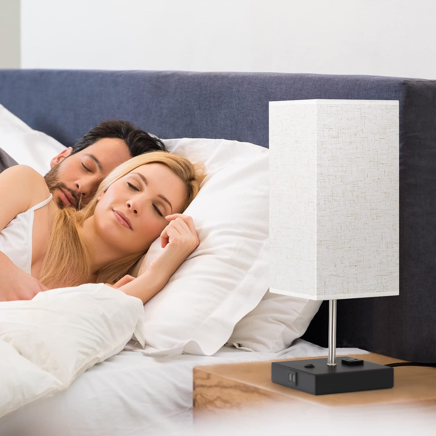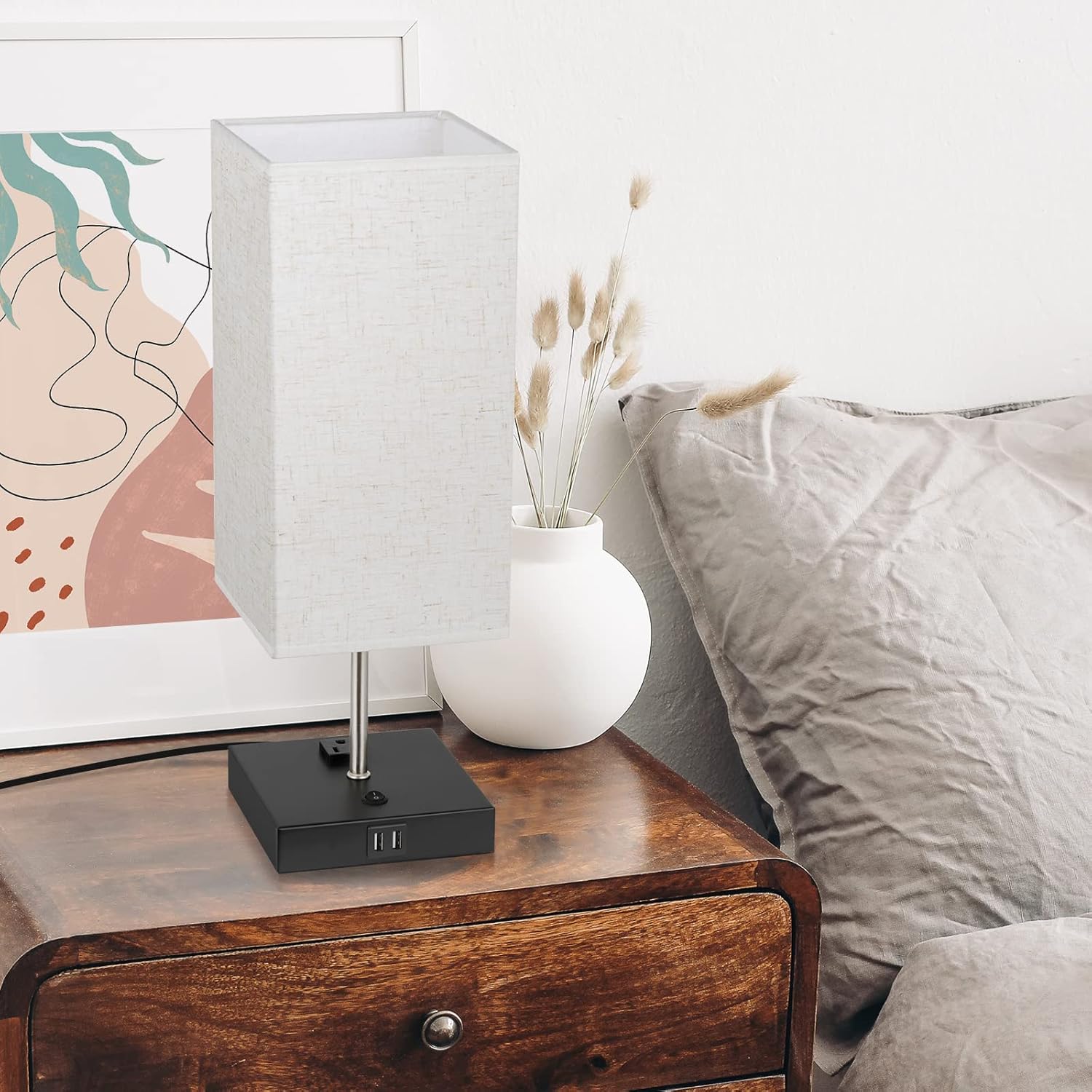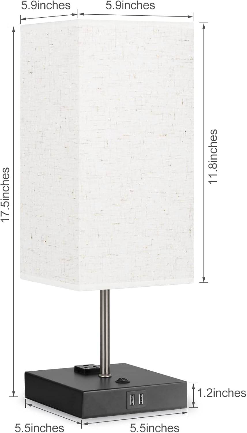 Stylish Decor for Your Sweet Home: This bedside lamp with USB port is made of linen fabric shade and heavy metal base. Minimalist design perfectly matches any home decorating style. Our table lamps for nightstand is 5.9"L x 5.9"W x 17.5"H, it is a great addition for living room, bedroom, study, children's room, office, adding a warm and comfortable atmosphere to your work or life.