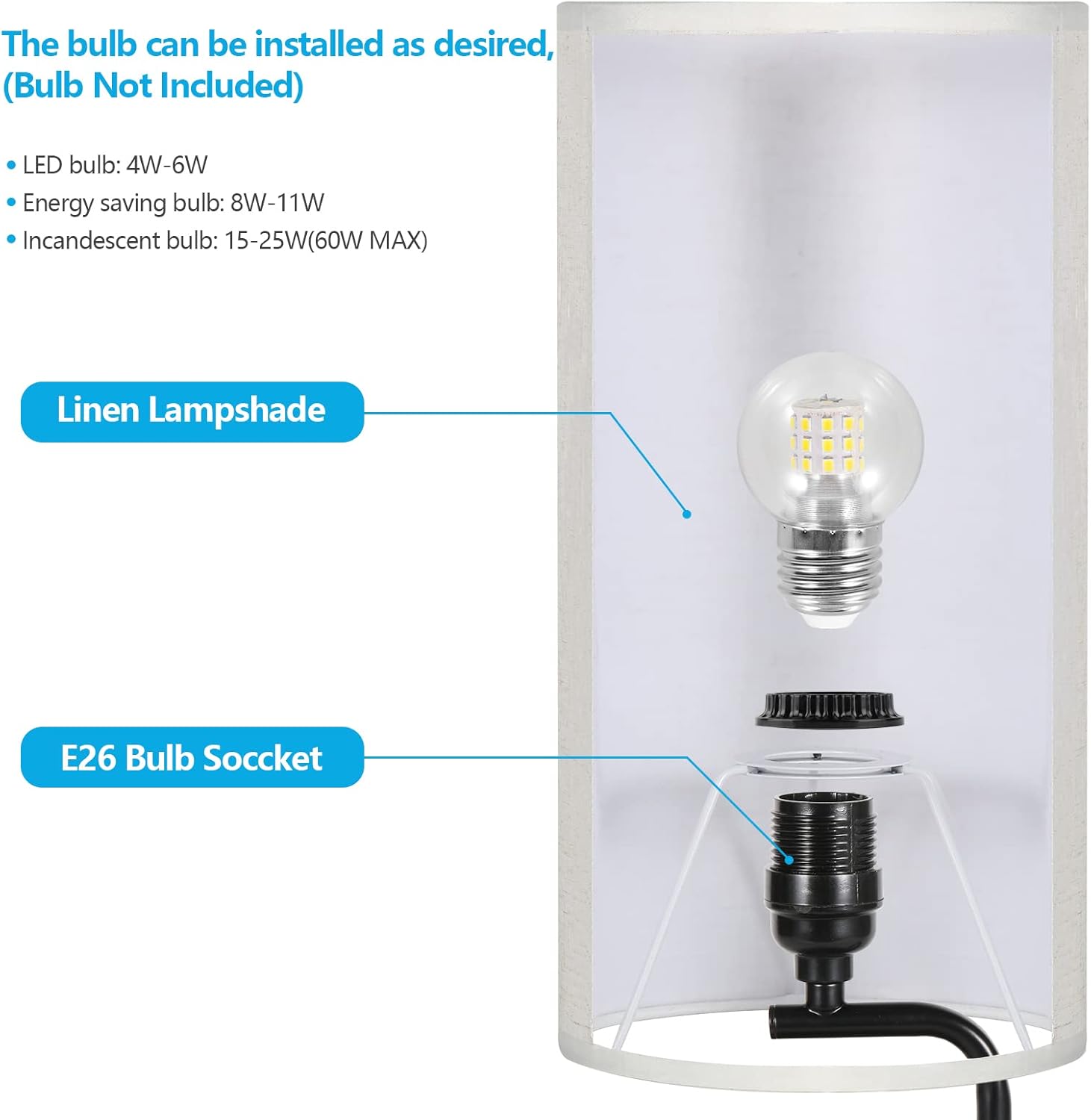 Healthier Eyes: The linen fabric shade works well with a variety of E26 standard size light bulbs, Max 60 Watts (Please note: bulb not included). The lampshade filters the right amount of light. Eliminate eye strain and protect your eyes. It provides soft yet plentiful lighting for your indoor space.