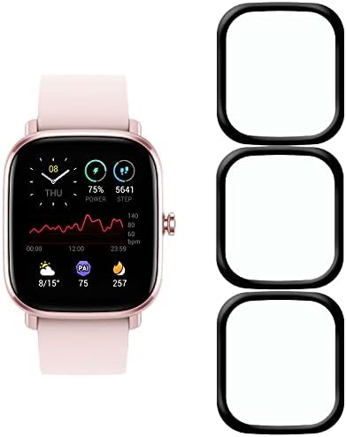 Protector de Pantalla para Amazfit GTS 2 Mini, Fácil de Instalar [Paquete de 3] Protector Curvado de Borde 3D Anti-Arañazos, Anti-Huellas HD Ultra Resistente a Roturas Flexible Compatible con Amazfit GTS 2 Mini