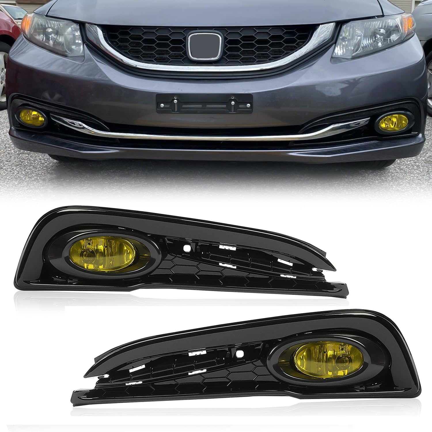 FITMENT- Fog Lights Compatible with 2013-2015 Honda Civic 4Dr Sedan All Models. Not Compatible with 2DR Coupe Model; Not Compatible with SI / HYBRID Model.