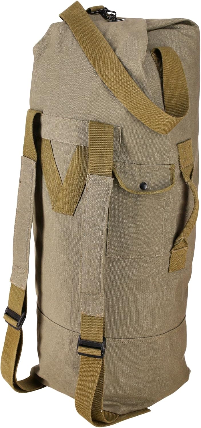 WHITEDUCK G.I Top Load Military Rucksack Style Double Strap Duffel Bag Heavy Duty and Water Resistant- Gym, Sports, Travel, Hiking, Backpacking (Olive, Standard 21" x 37")