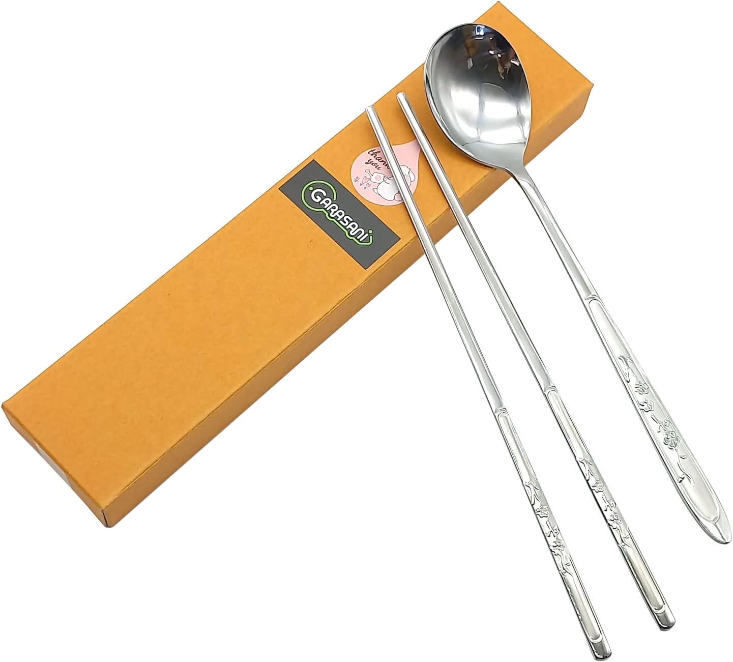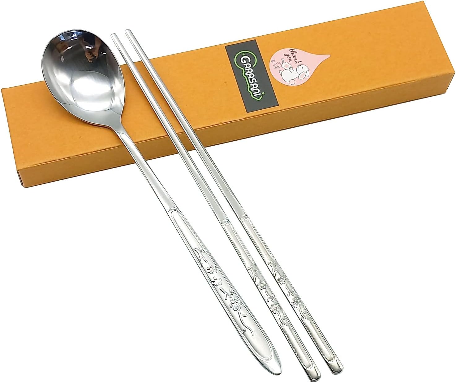 GARASANI Utensilios Tradicionales Coreanos de Acero Inoxidable, Set de Cuchara y Palillos (Plum blossom plateado)
