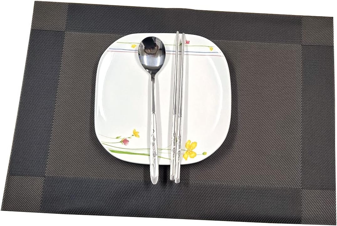 Toque asiático. Perfectos para tu mesa de cena o como declaración de moda, nuestros elegantes y asequibles palillos y cucharas son únicos. Desde los tiempos más antiguos, los coreanos siempre han usado una combinación de algo para cucharar y algo para recoger. Antes de que aparecieran los tenedores y cuchillos de metal, probablemente se usaba la concha de una almeja para la cuchara y dos trozos de madera para los palillos. Desde el descubrimiento de la fundición, se han utilizado níquel, bronce, oro, plata y otros metales para hacer cucharas y palillos. La mayoría de los coreanos usan la cuchara para comer arroz y los palillos para los platos secundarios, aunque algunos consideran apropiado usar la cuchara solo para sopa. Incluye: 1 x Cuchara 2 x Palillos planos, Embalaje en caja de papel