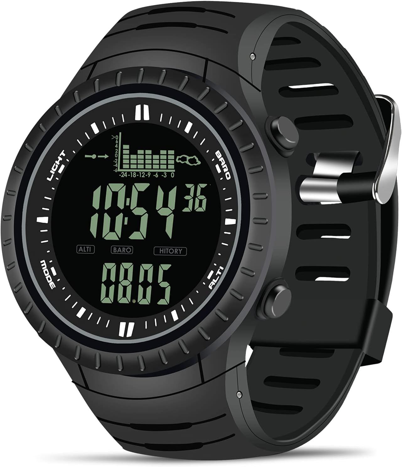 CakCity Mens Digital Watch Waterproof Military Sports Tactical Fishing Wrist Watches for Men with Weather Altimeter Barometer Thermometer, Black