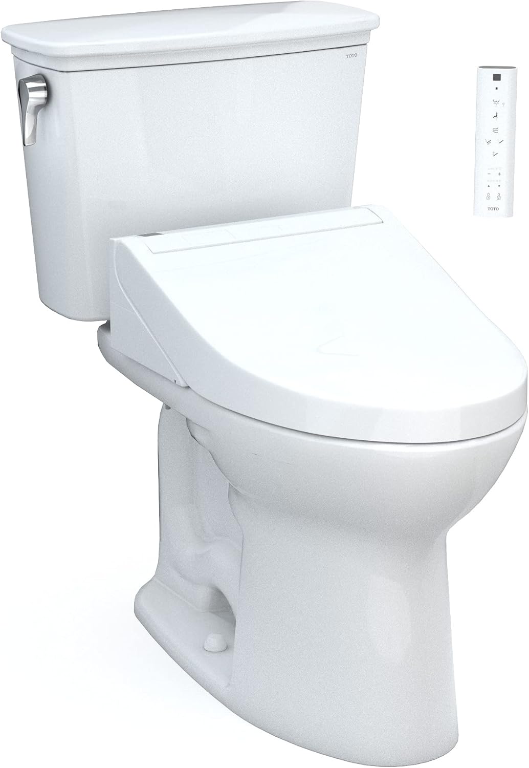 The TOTO Drake Transitional WASHLET+ Two-Piece Elongated 1.28 GPF Universal Height TORNADO FLUSH Toilet with C5 Bidet Seat is designed to conceal the WASHLET power cord and water supply hose for a seamless installation. Part of the newly redesigned C Series, the WASHLET C5 features a soft rear spray, rear cleanse, and front cleanse with the option of an oscillating or pulsating stream. The temperature and pressure of the water are adjustable, each with five settings. The controls are located on a slim, wireless remote. PREMIST® wets the surface of the toilet bowl, aiding in the removal of waste and resulting in a better clean. The C5 model utilizes TOTO's EWATER+® system when the wand self-cleans. EWATER+ transforms the water into a safe and powerful compound, creating peace of mind by cleaning the inside and outside of the wand before and after every use. The WASHLET features a heated SoftClose seat with five temperature settings. The WASHLET features an air deodorizer and a warm air dryer with five temperature settings. The Drake features TOTO’s TORNADO FLUSH®, a rimless, hole-free design with dual-nozzles that creates a centrifugal washing action that assists in rinsing the bowl more efficiently. This version of the TOTO Drake includes CEFIONTECT®, a layer of exceptionally smooth glaze that minimizes waste from sticking to the ceramic. CEFIONTECT, coupled with PREMIST® and TORNADO FLUSH, assists to reduce the frequency of toilet cleanings, minimizing the usage of water, harsh chemicals, and time required for cleaning. This version of the TOTO Drake is designed in TOTO’s Universal Height, which allows for a more comfortable seat position across a wide range of users. This WASHLET+ toilet includes WASHLET, Drake bowl and tank set with hardware, and toilet bolt caps. Compatible with T40 WASHLET+ electronic bidet seat and toilet bowl components only. Additional items needed for installation must be purchased separately: wax ring, toilet mounting bolts, and toilet water supply lines.