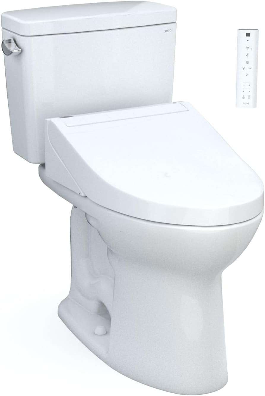 The TOTO® Drake® WASHLET®+ Two-Piece Elongated 1.6 GPF Universal Height TORNADO FLUSH® Toilet with C5 Bidet Seat, 10 Inch Rough-In is designed to conceal the WASHLET power cord and water supply hose for a seamless installation. Part of the newly redesigned C Series, the WASHLET C5 features a soft rear spray, rear cleanse, and front cleanse with the option of an oscillating or pulsating stream. The temperature and pressure of the water are adjustable, each with five settings. The controls are located on a slim, wireless remote. PREMIST® wets the surface of the toilet bowl, aiding in the removal of waste and resulting in a better clean. The C5 model utilizes TOTO's EWATER+® system when the wand self-cleans. EWATER+ transforms the water into a safe and powerful compound, creating peace of mind by cleaning the inside and outside of the wand before and after every use. The WASHLET features a heated SoftClose seat with five temperature settings. The WASHLET features an air deodorizer and a warm air dryer with five temperature settings. The Drake features TOTO’s TORNADO FLUSH®, a rimless, hole-free design with dual-nozzles that creates a centrifugal washing action that assists in rinsing the bowl more efficiently. This version of the TOTO Drake includes CEFIONTECT®, a layer of exceptionally smooth glaze that minimizes waste from sticking to the ceramic. CEFIONTECT, coupled with PREMIST® and TORNADO FLUSH, assists to reduce the frequency of toilet cleanings, minimizing the usage of water, harsh chemicals, and time required for cleaning. This version of the TOTO Drake is designed in TOTO’s Universal Height, which allows for a more comfortable seat position across a wide range of users. This WASHLET+ toilet includes WASHLET, Drake bowl and tank set with hardware, and toilet bolt caps. Compatible with T40 WASHLET+ electronic bidet seat and toilet bowl components only. Additional items needed for installation must be purchased separately: wax ring, toilet mounting bolts, and toilet water supply lines.