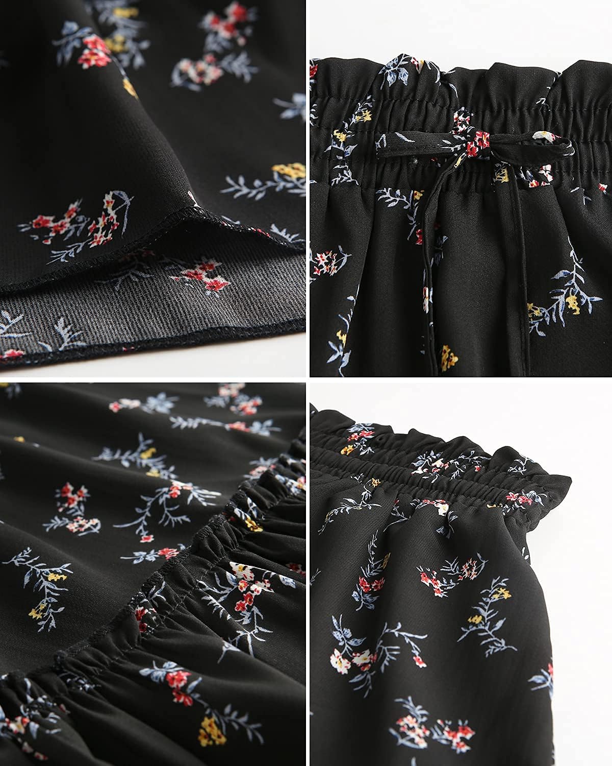 Alelly Women's Summer Cute High Waist Ruffle Skirt Floral Print Swing Beach Mini Skirt