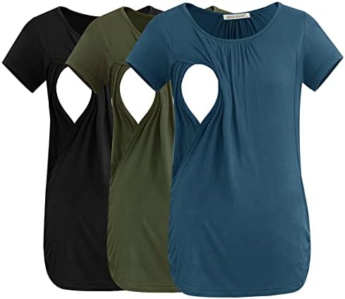 Smallshow Women's Nursing Tops Ruched Short Sleeve Breastfeeding Shirts 3-Pack