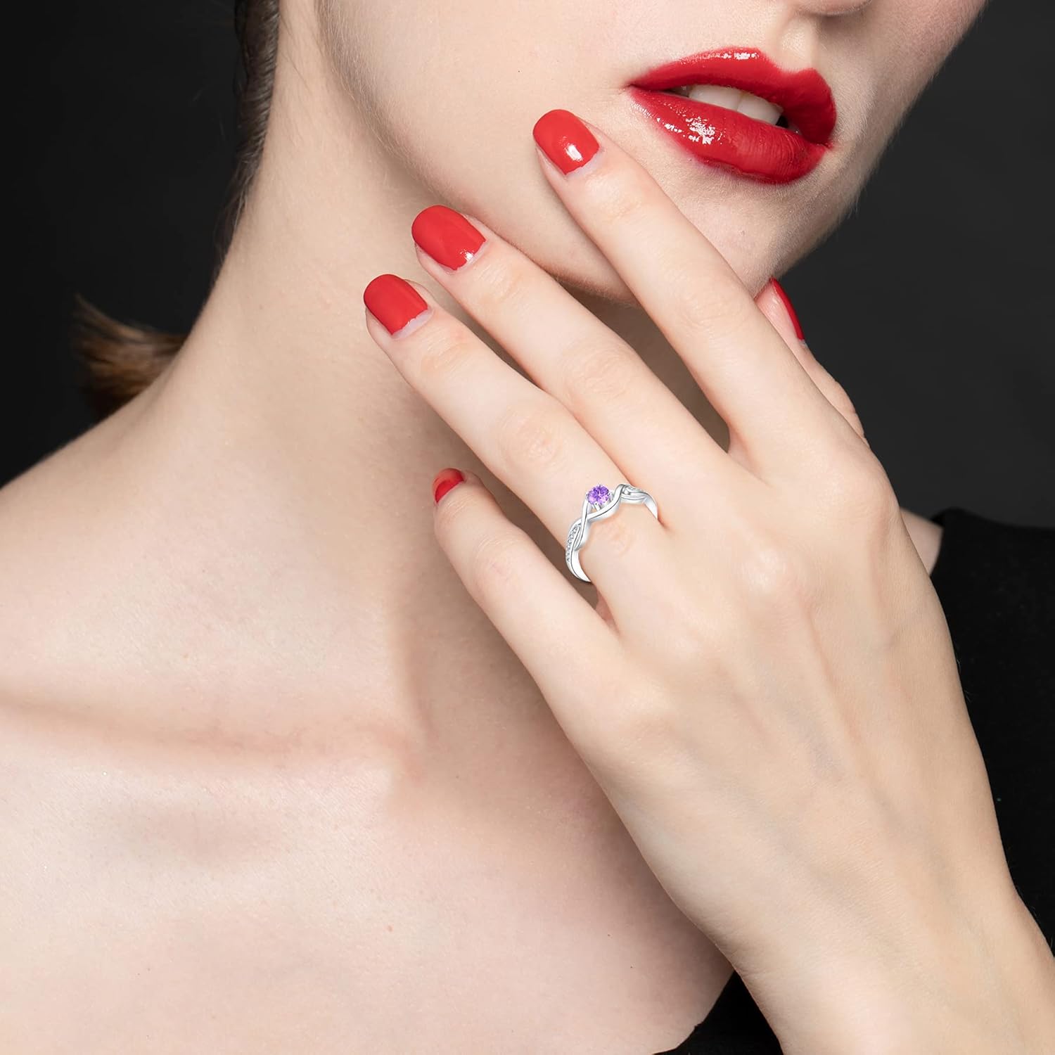 JO WISDOM Infinity Knot Promise Rings for Her Sterling Silver Cubic Zirconia Wedding Engagement Rings